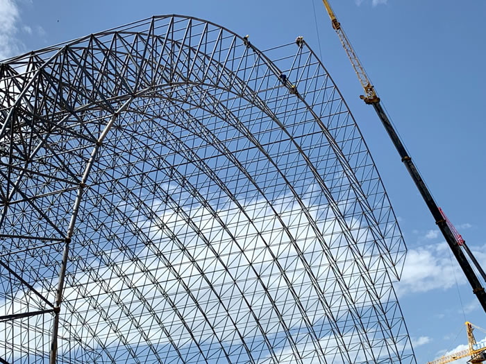 (2)网架加工前应对现场尺寸进行复测,确认无误后方可进行加工、安装;网架制作、运输、安装应遵守《空间网格结构技术规程》JGJ7-2010、《钢网架忻州螺栓球节点》JG/T 10-2009、《钢网架忻州螺栓球节点用高强度螺栓》 GB/T 16939-2016、《忻州钢结构忻州工程忻州施工规范》 GB50755-2012、《忻州钢结构忻州工程忻州施工质量验收标准》 GB50205-2020。
